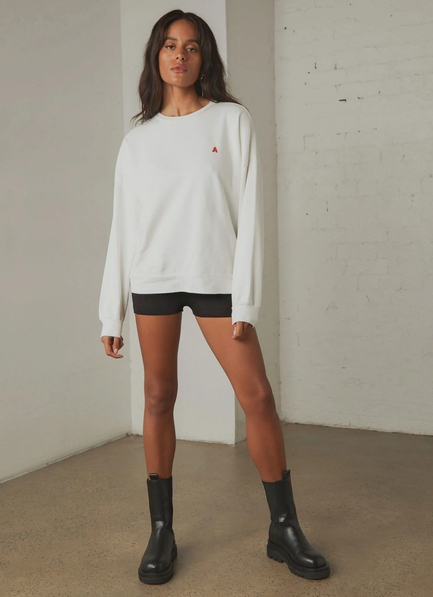 This minimalistic sweater is the perfect staple for the coming winter. It features a relaxed fit, drop shoulders and the iconic Abrand initial on the left side of the chest. It’s an easy piece to layer with and goes with anything. We love this one paired with your fave vintage wash denim and chunky sneakers.