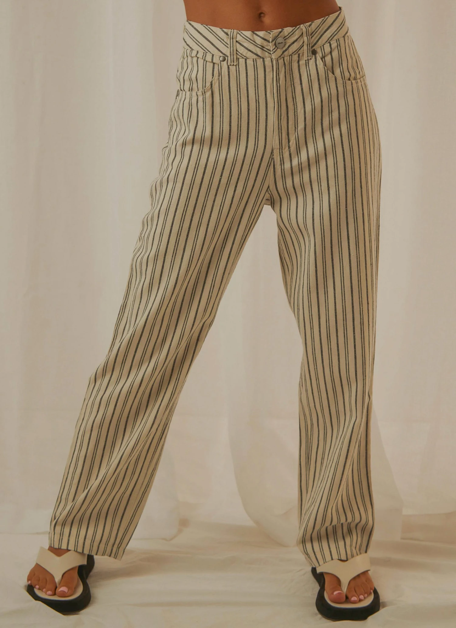The Shelby stripes are an ode to sustainable styling. Crafted from the premium eco-blend of hemp and OCS certified organic cotton twill in our custom cream and faded black pinstripe, these midweight pants will make you feel like you’re on holiday.