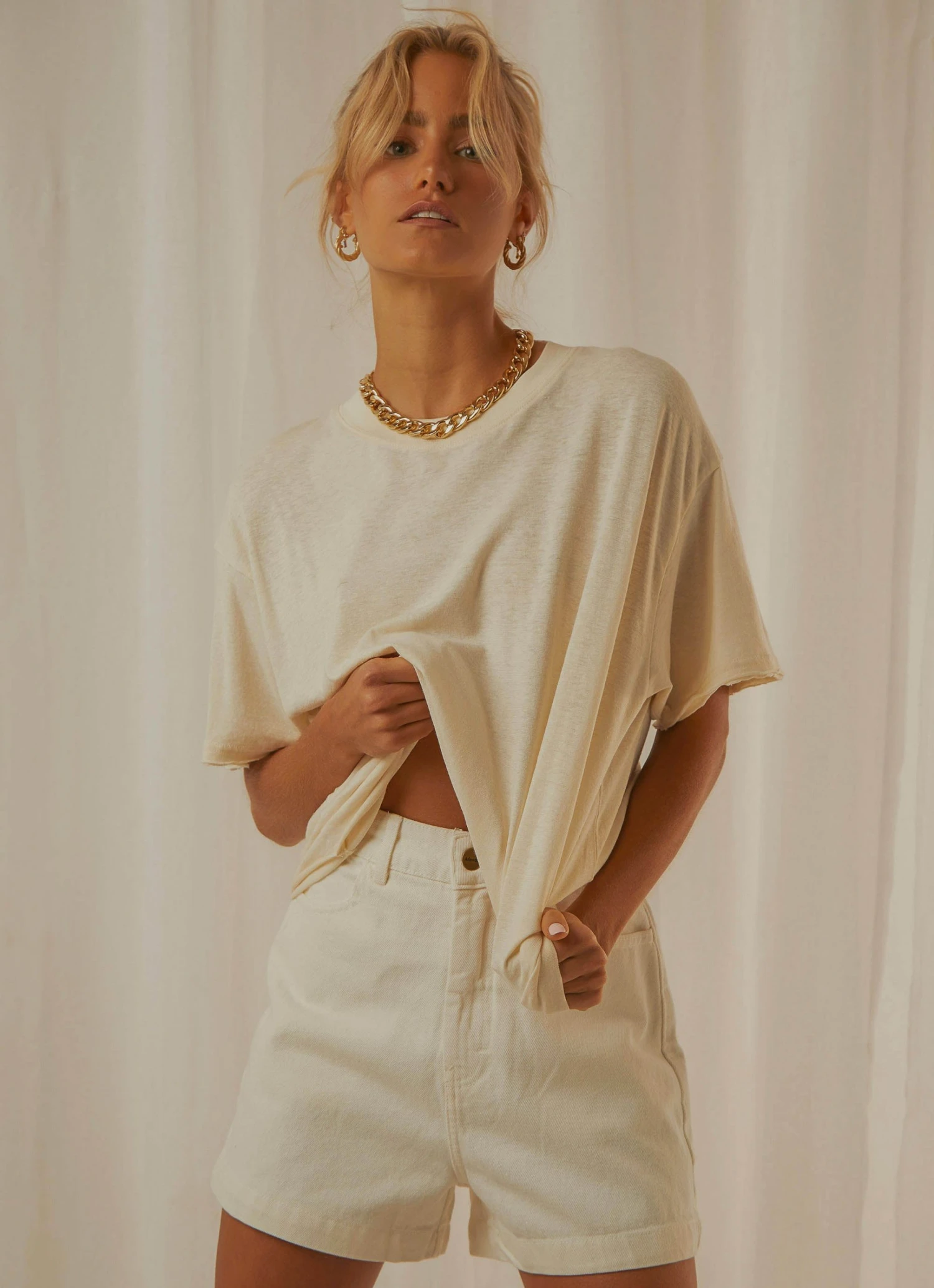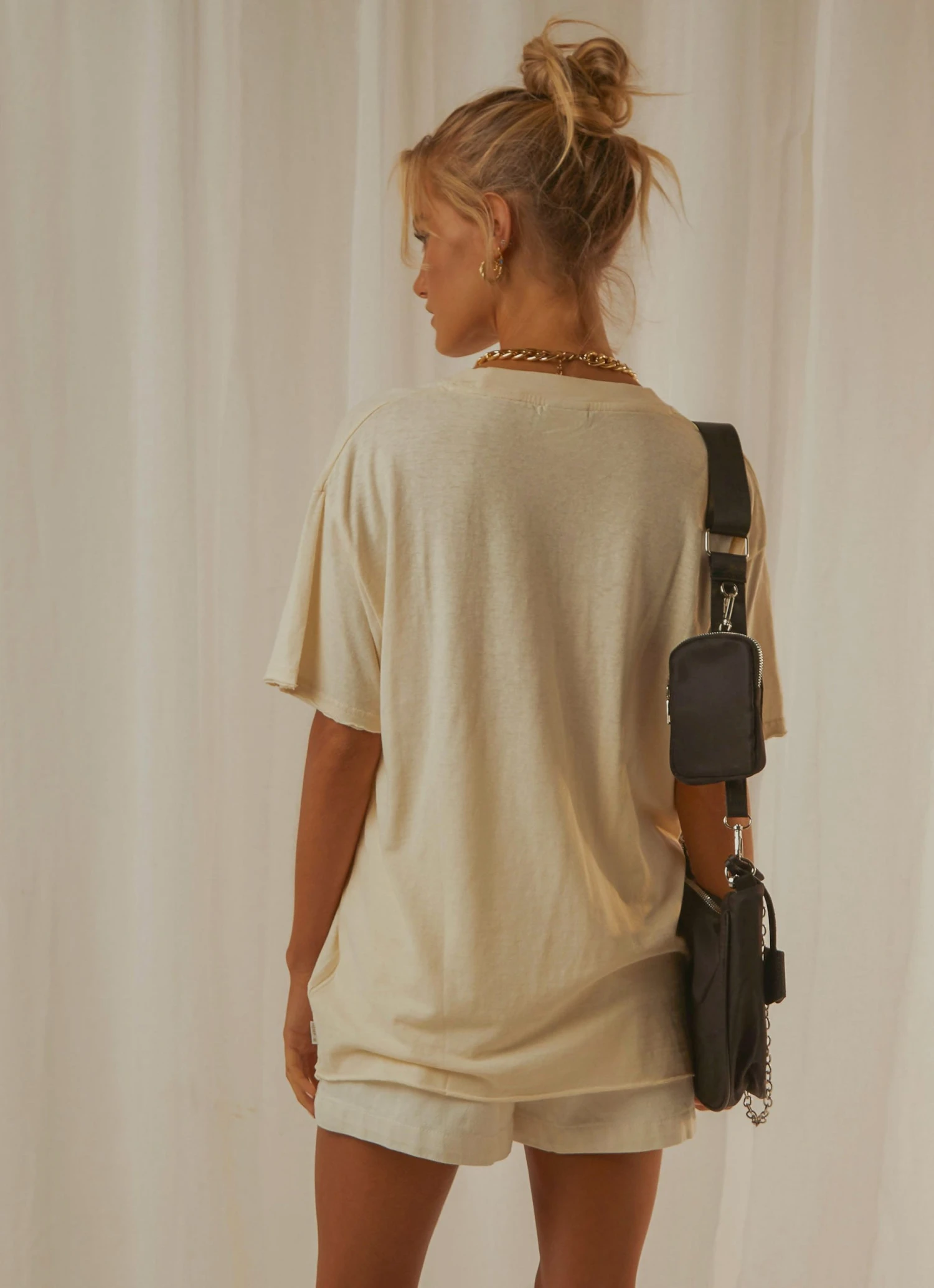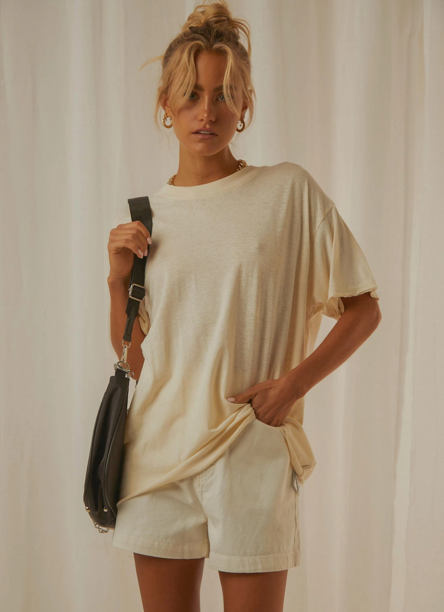Slay in the Hemp Oversized Tee. Crafted from our beloved, buttery soft hemp and OCS certified organic cotton jersey construction that has been overdyed with a heavy stone wash to show the highs and lows of the fabric.
