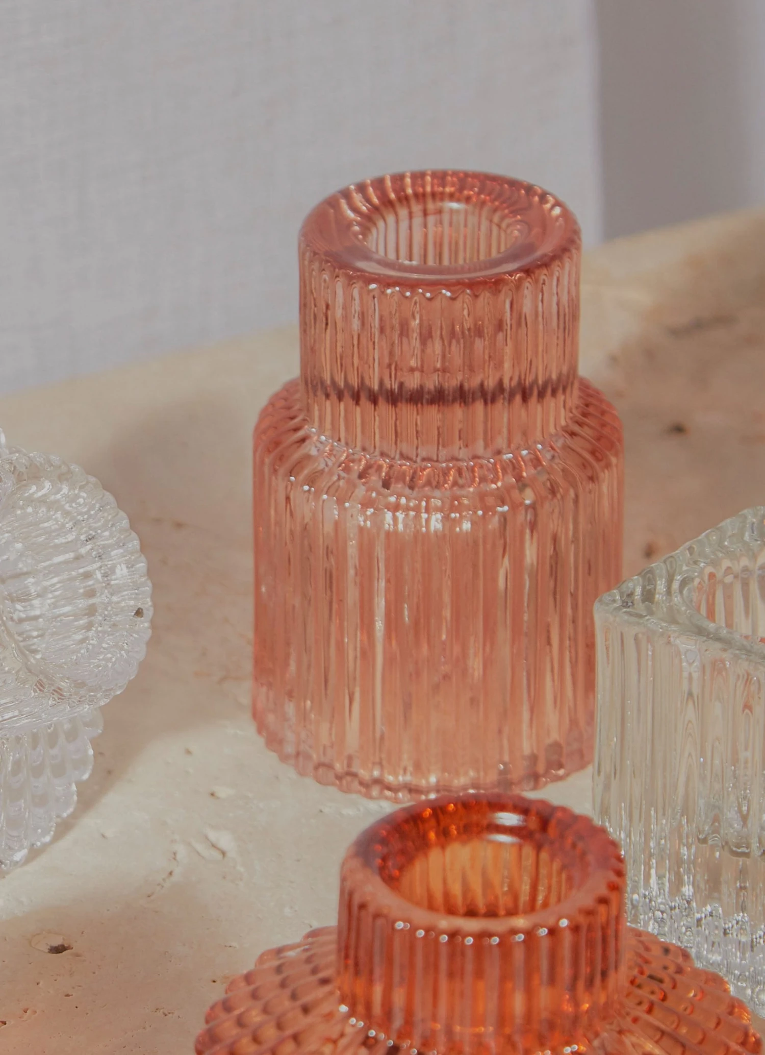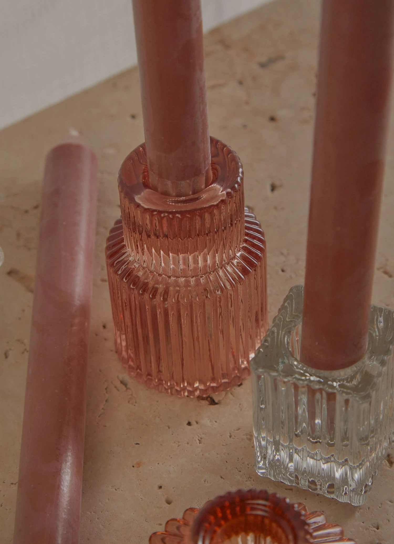 The Arlo Vintage Glass Candle Holder in Amber has a gorgeous, retro silhouette and stylish pleated glass finish. Cleverly designed to suit multiple candle types. Simply flip this duo candle holder over to hold tealight candles or use narrow side up for both Dinner and Taper candles.
