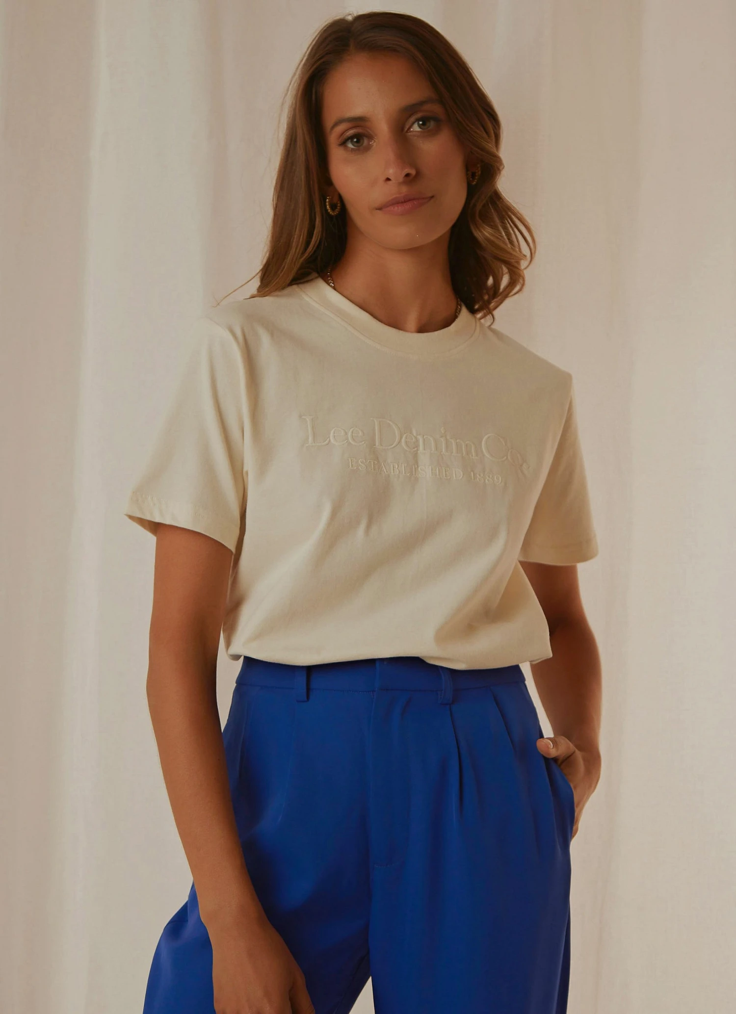 The Classic Tee Vanilla is a regular fit short sleeve t-shirt. It features a crew neckline, with Lee logo chest embroidery and is finished in 100% BCI cotton jersey. Thanks to its regular length it looks great tucked into your fave high waisted jeans.