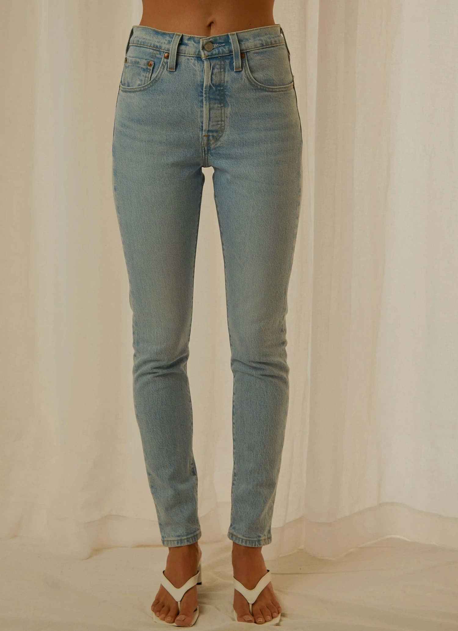The timeless 501® Jean, reinterpreted for today with a sleek skinny leg and crafted wth a hint of stretch. Made using Levi’s Water<,Less® Techniques.
