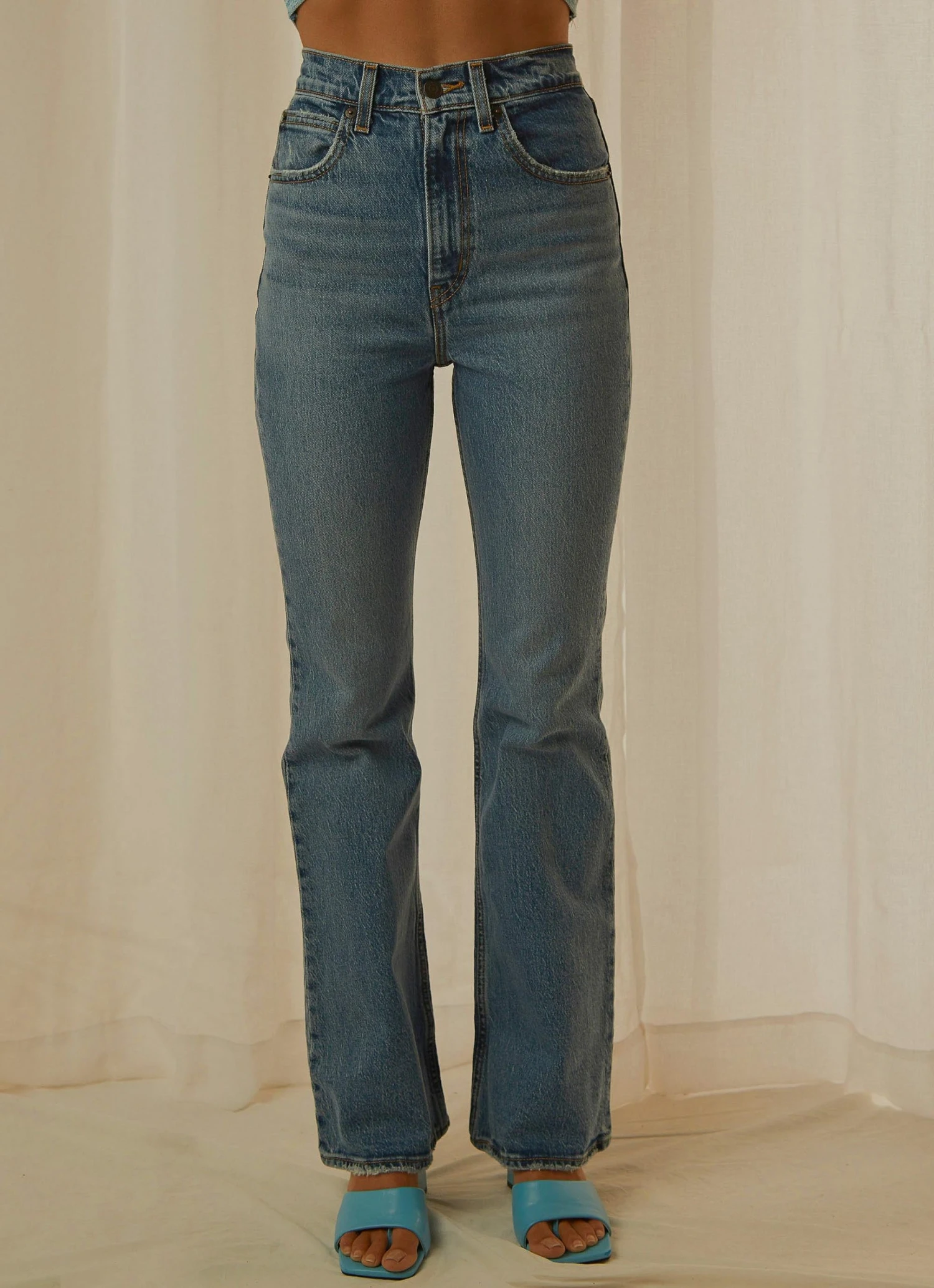 This decade is reaching new heights—literally. Made from organic denim in a fit slim through the thighs and a classic straight leg opening, with a flattering high rise designed to look and feel like an authentic vintage pair of jeans. A timeless silhouette perfect for pairing with ankle boots or barely-there sandals.