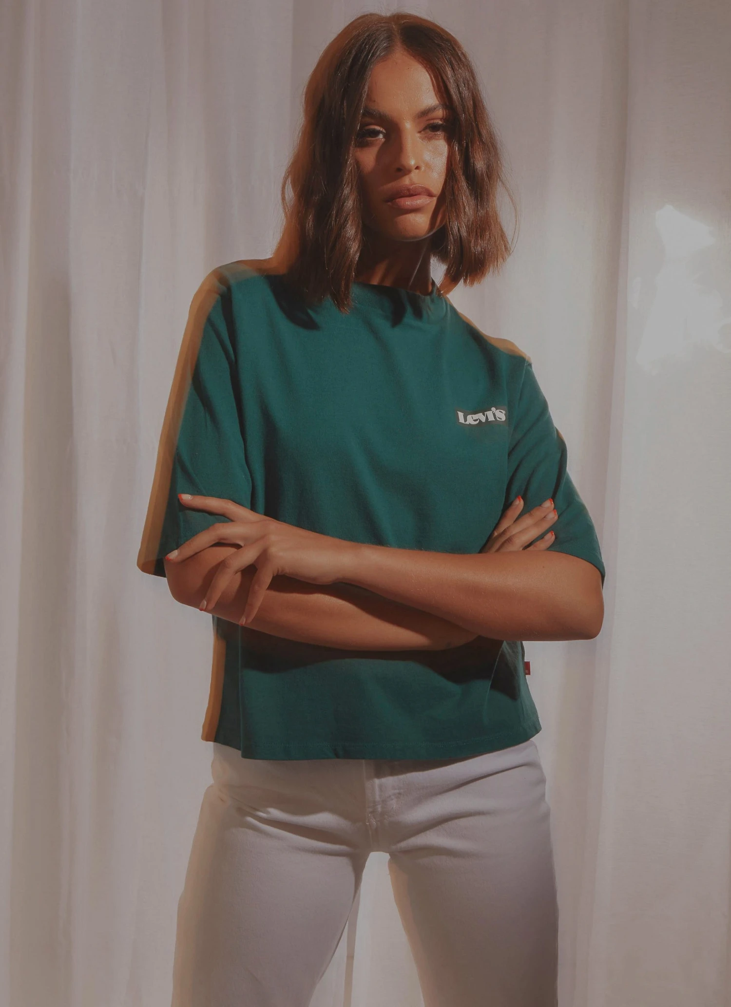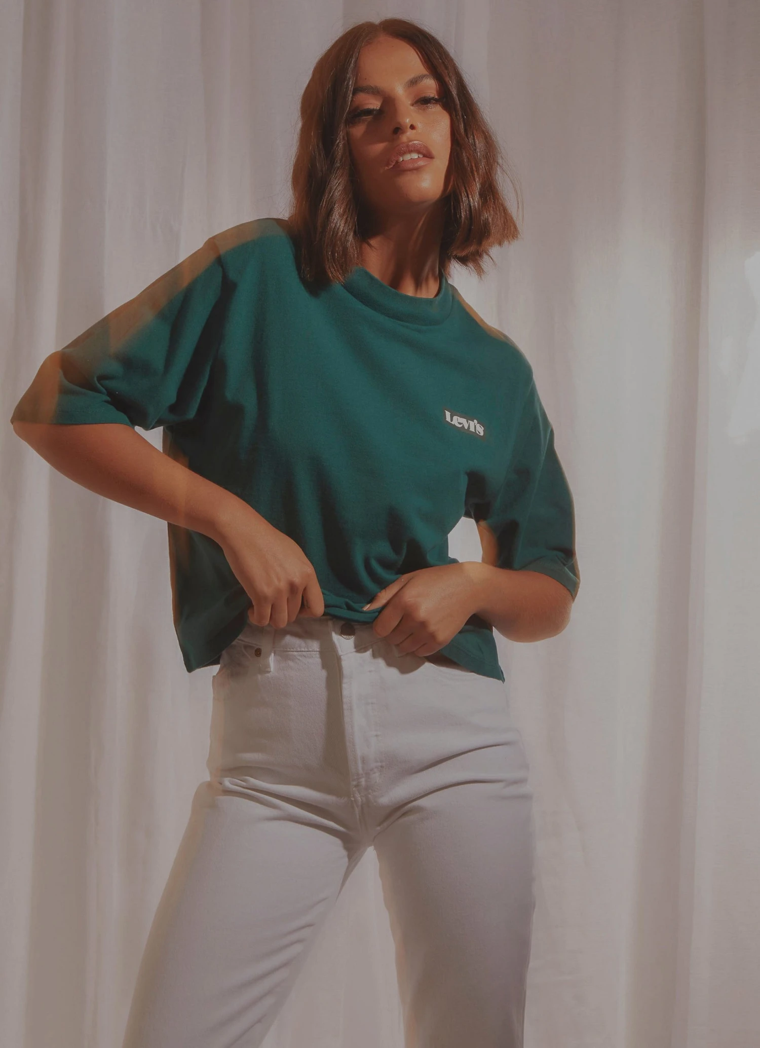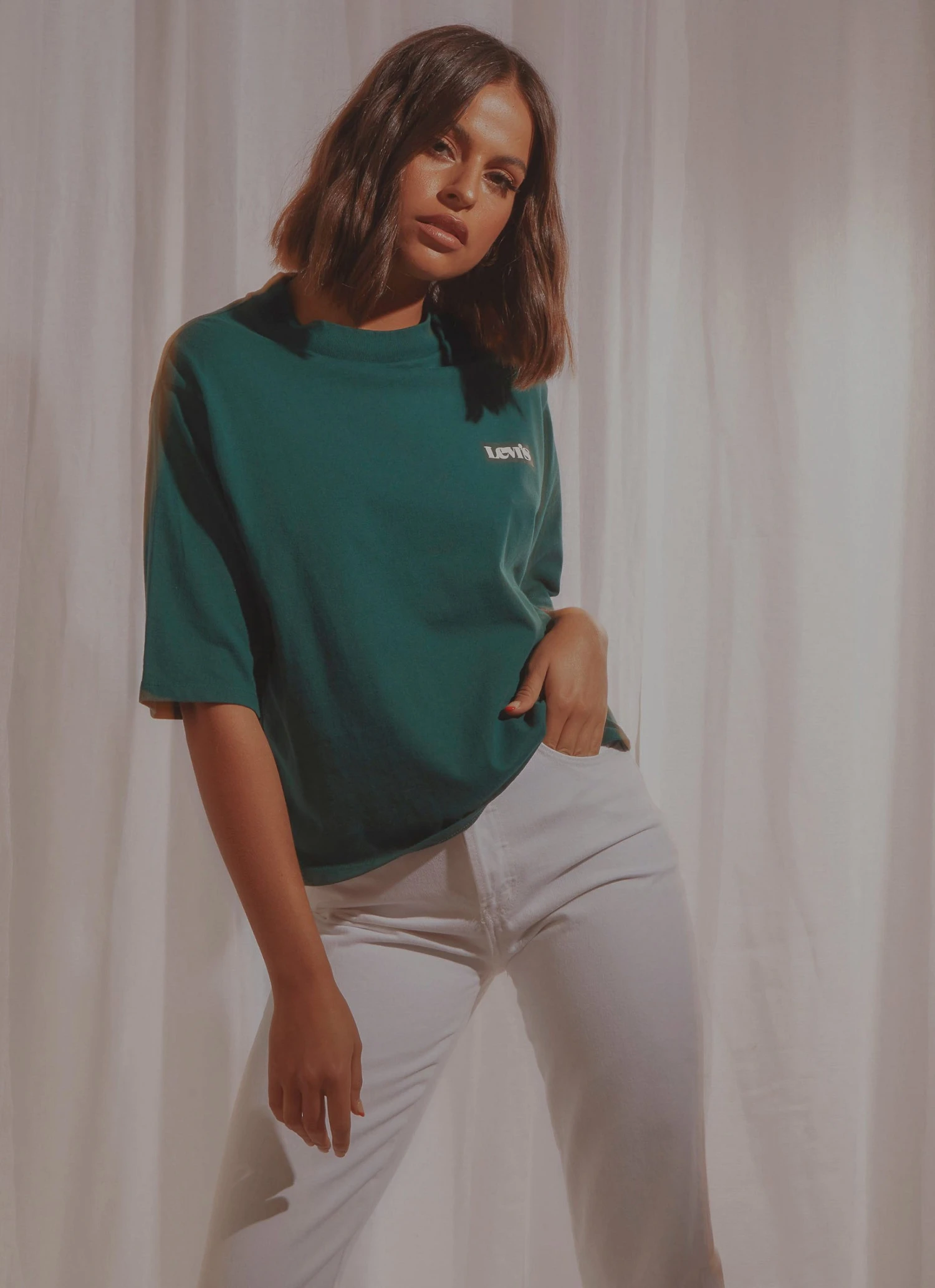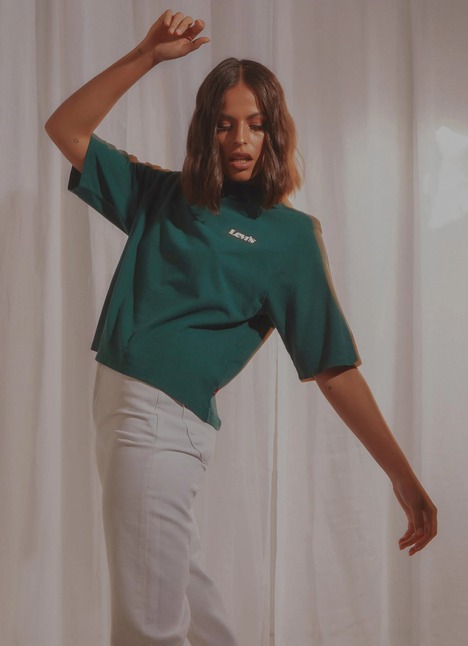 Vintage-inspired mockneck tee with a relaxed fit. Thick jersey cotton. Features a Levi’s® logo at the chest.