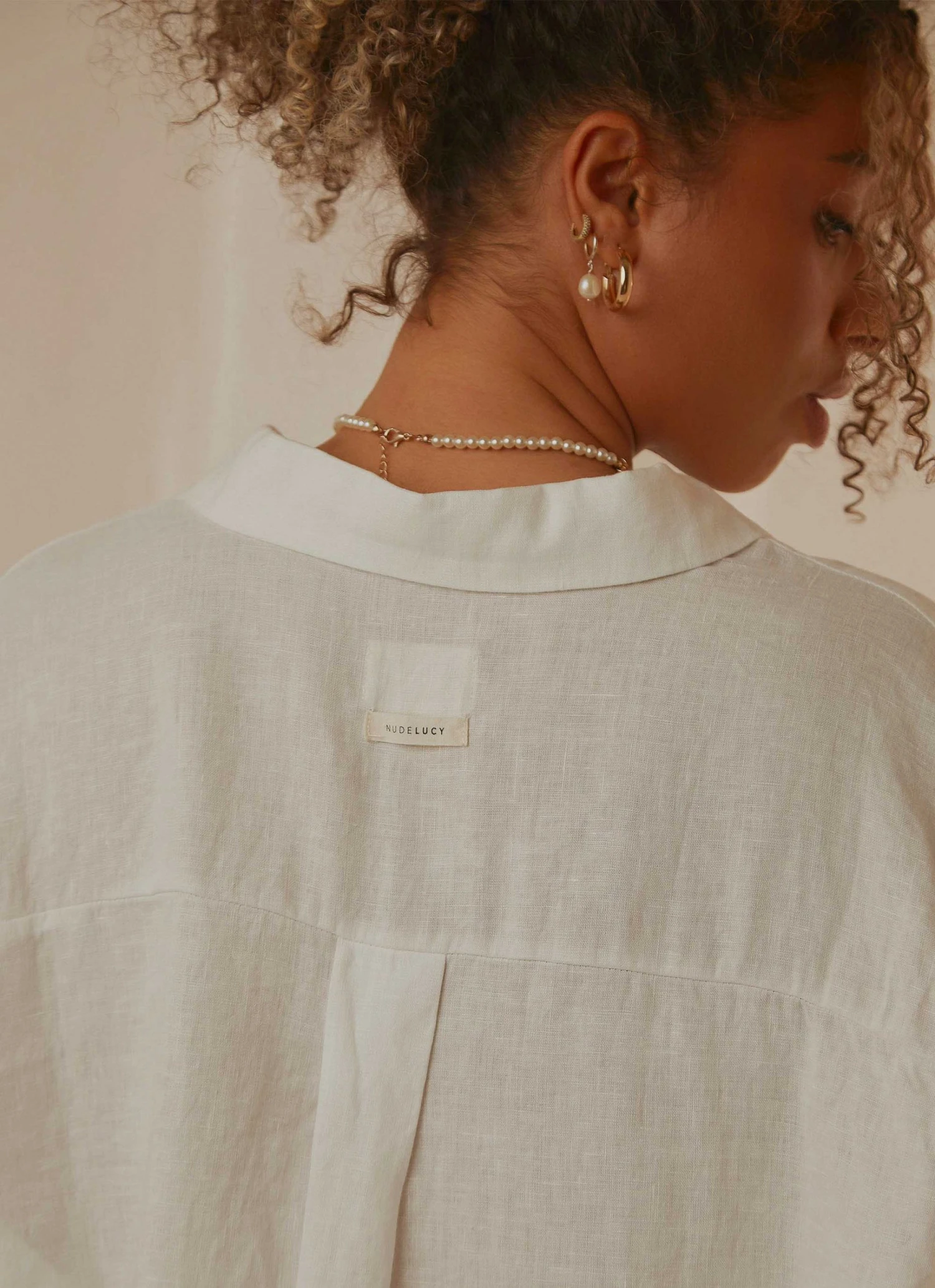 Nude Lucy New & Most Loved Nude Linen Lounge Shirt Dress – White