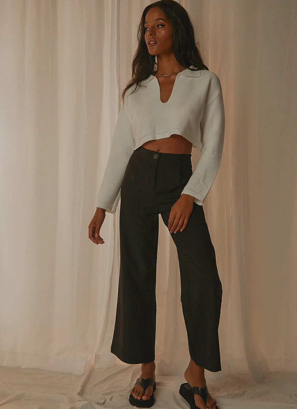 A must this season, you’ll be wearing this Knit crop everyday. We love it with high waisted denim or a mini skirt and mules.