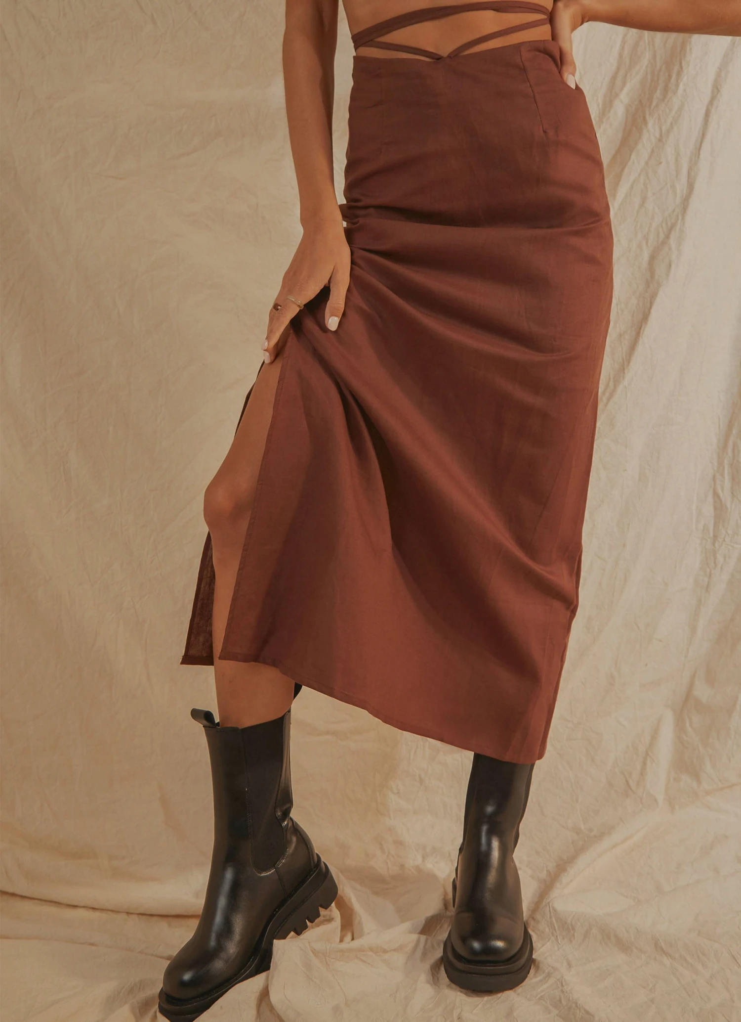 Chic and Simple, we are obsessing over our Beach Club Linen Tie Skirt. Pair this with the Last Champagne Linen Halter and strappy heels for a look thats sure to send you straight to the top of everyones best dressed list.
