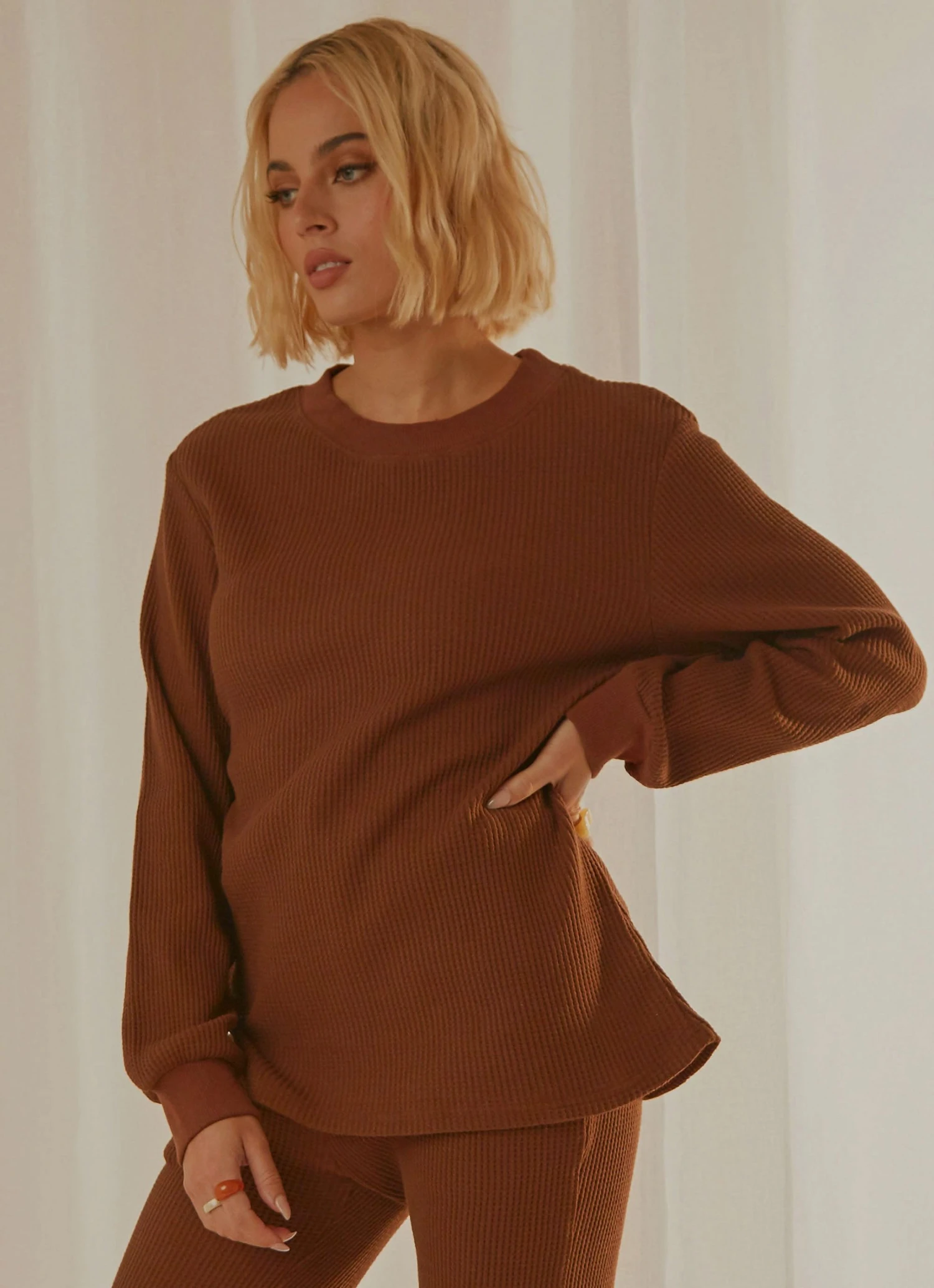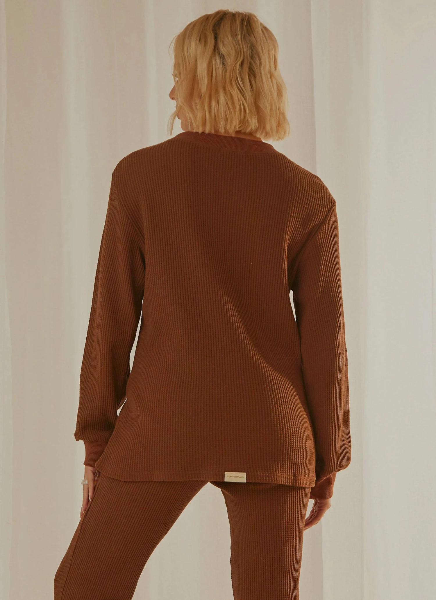 Loungewear lovin’! Say hello to the Kallie Waffle top, chic and comfy at the same time. We love this paired with the matching Celia Waffle Pants.