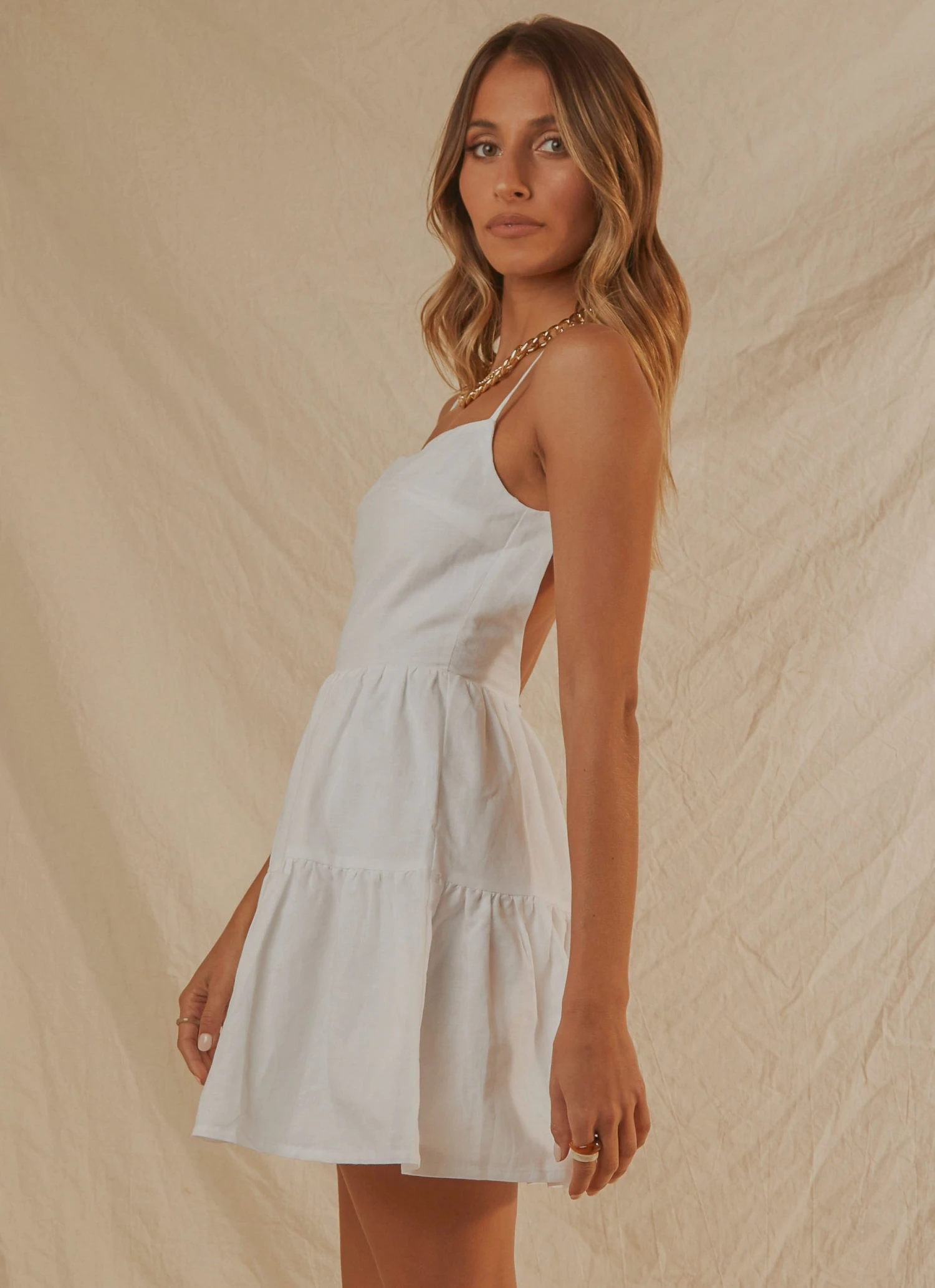 We are obsessing over the Love Signs Linen Mini Dress. Featuring a gorgeous low scooped back and tiered skirt, this dress will be a chic new addition to your weekend wardrobe rotation. Perfect for sunset drinks at your fave beachside bar. Pair with strappy mules and vintage inspired gold jewellery.