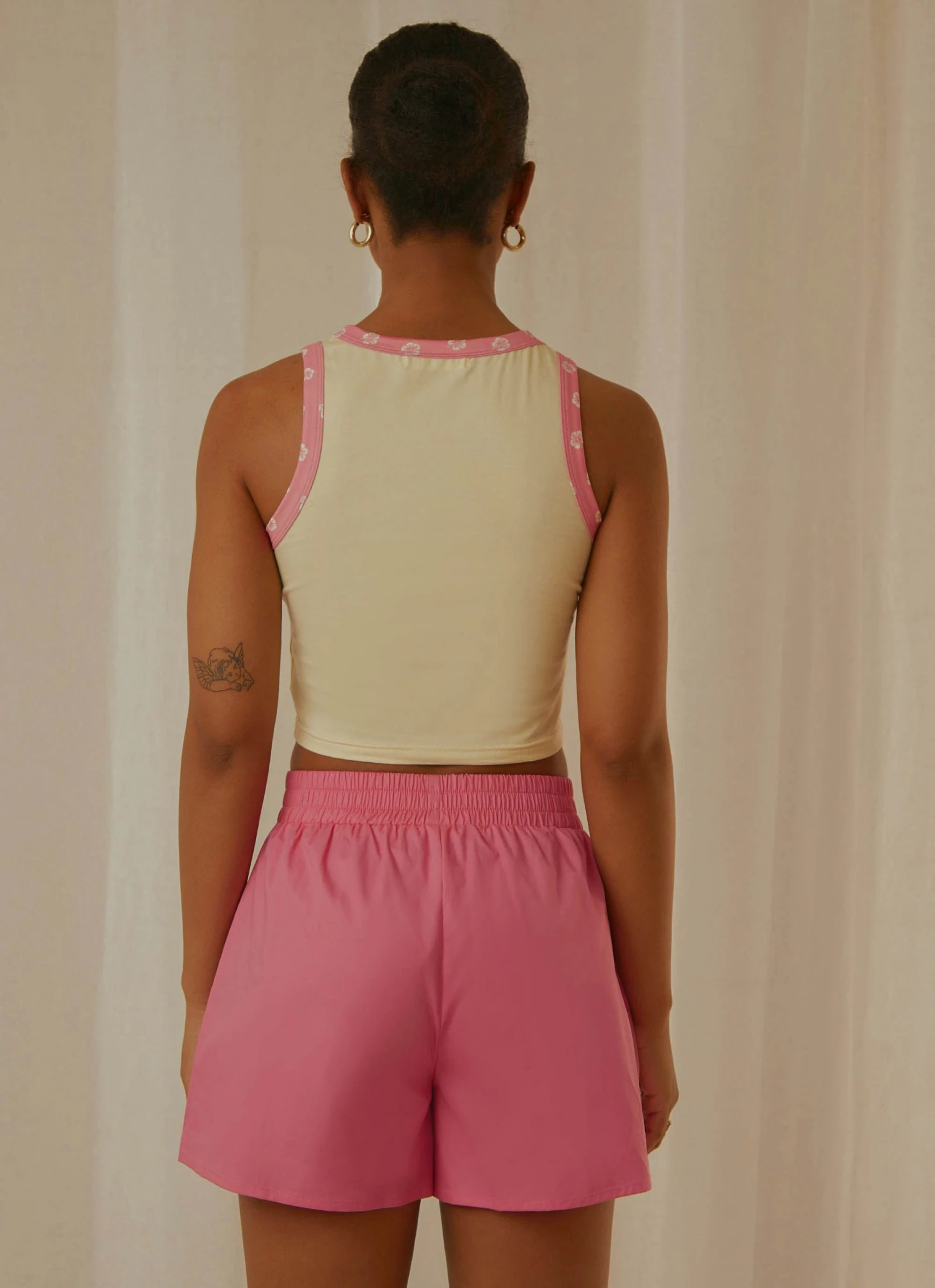 We’re feeling all the summer vaycay vibes in the Lankai Traveller Crop! We love this paired with Our Electric Avenue pants and platform sandals.
