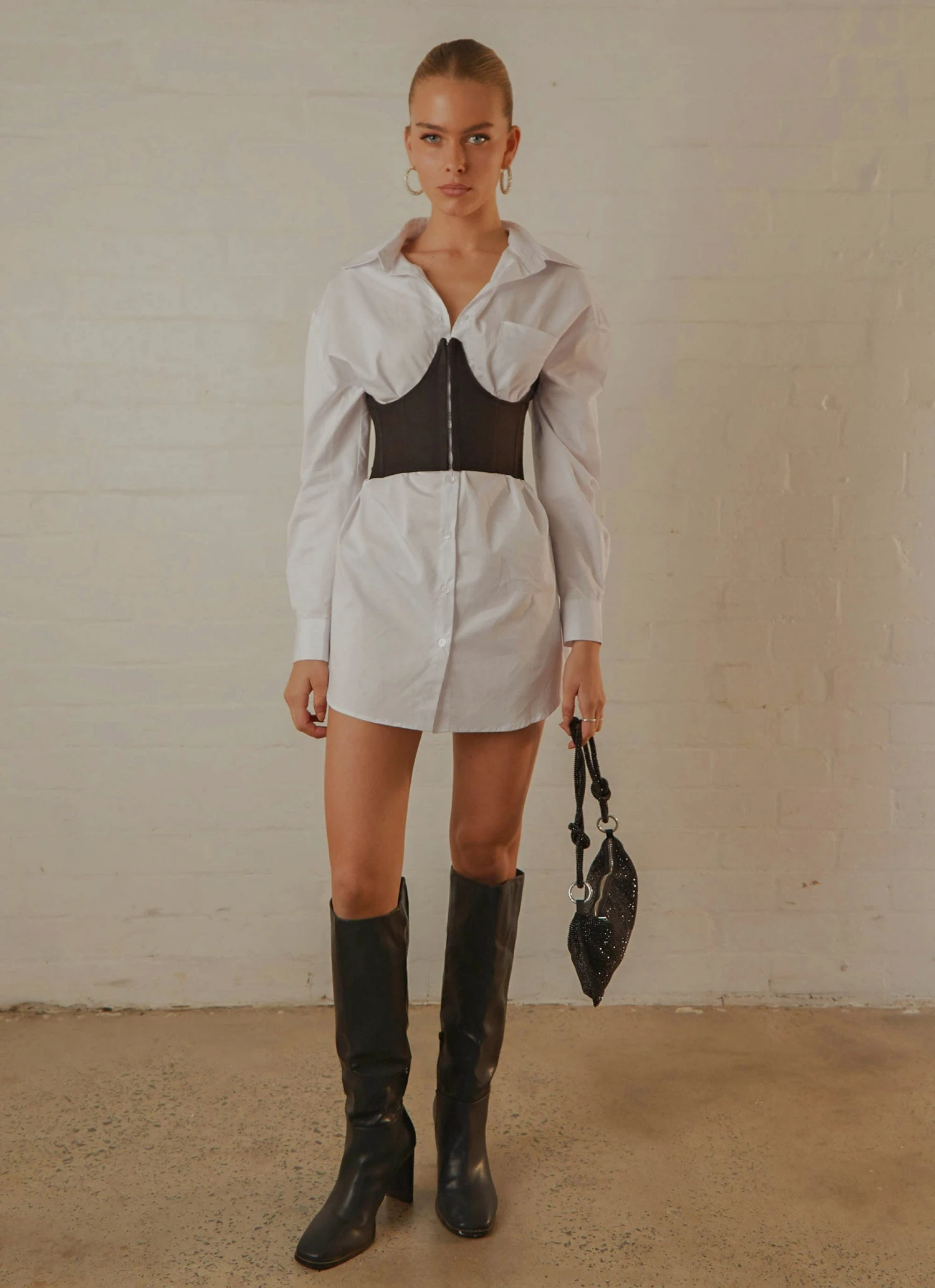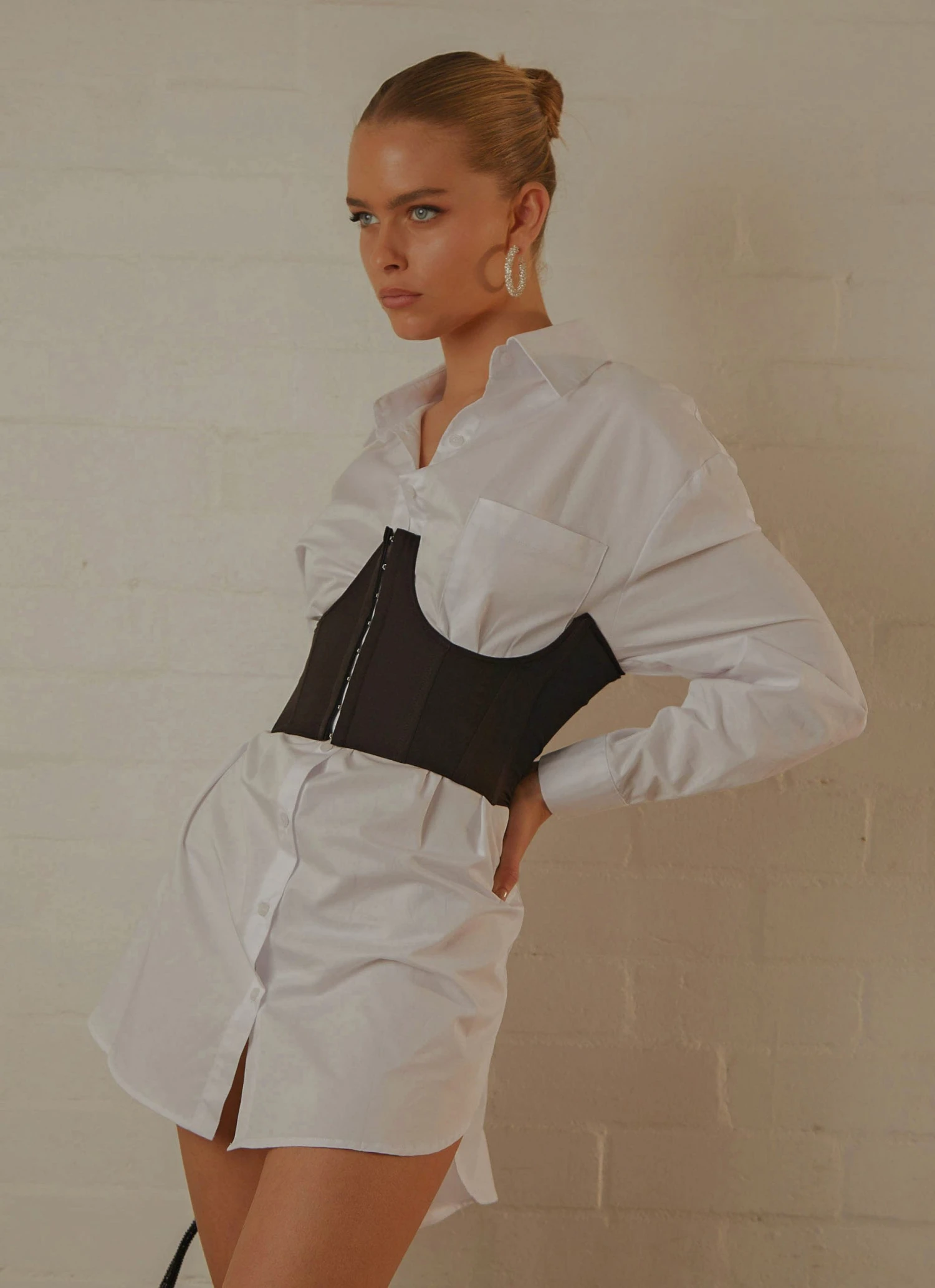 Oozing sex appeal with the Summer Fade Underbust Corset featuring structured boning throughout and hook and eye fastening at the front. Layer her up over the Downtown Love Shirt Dress.