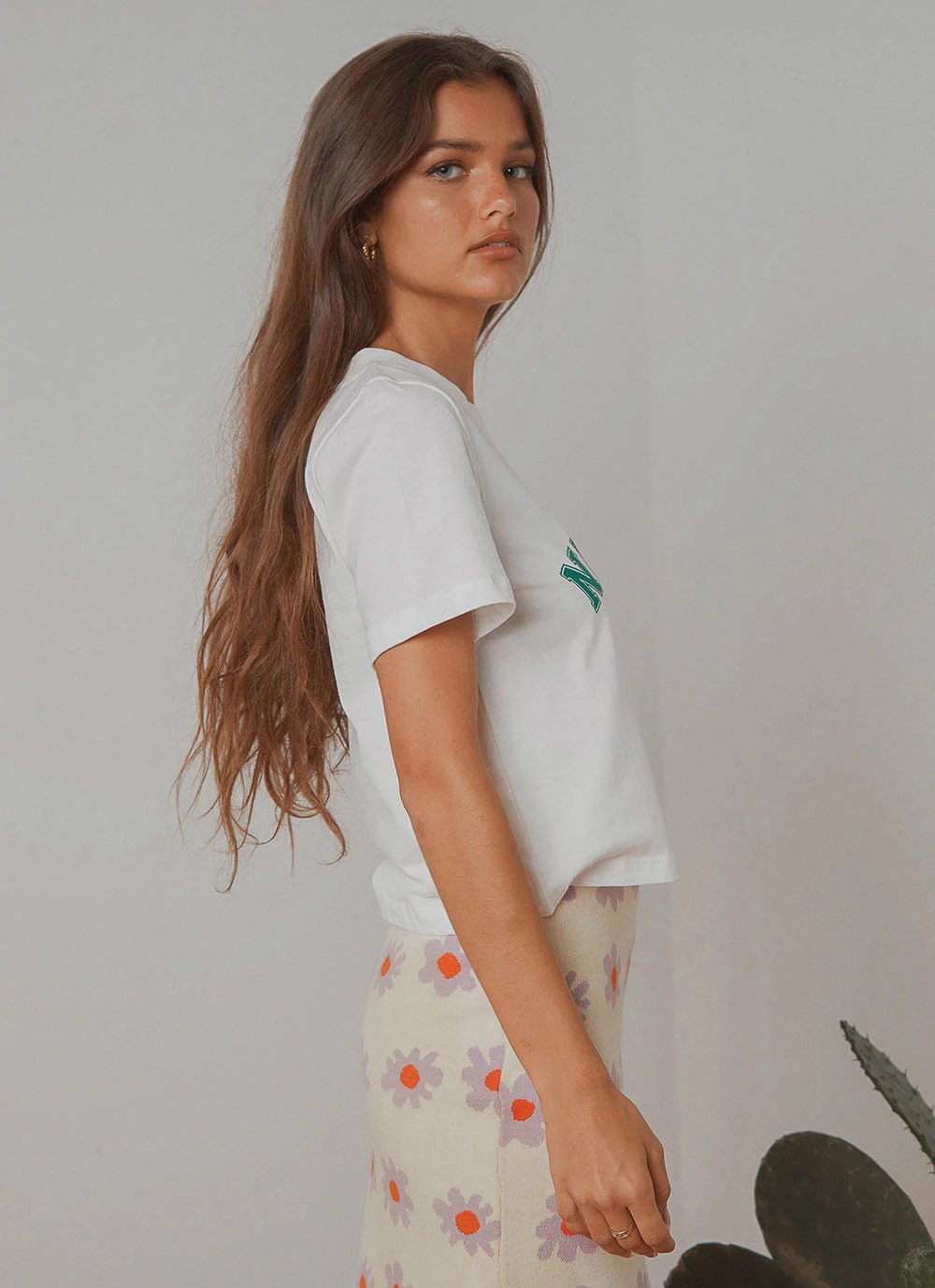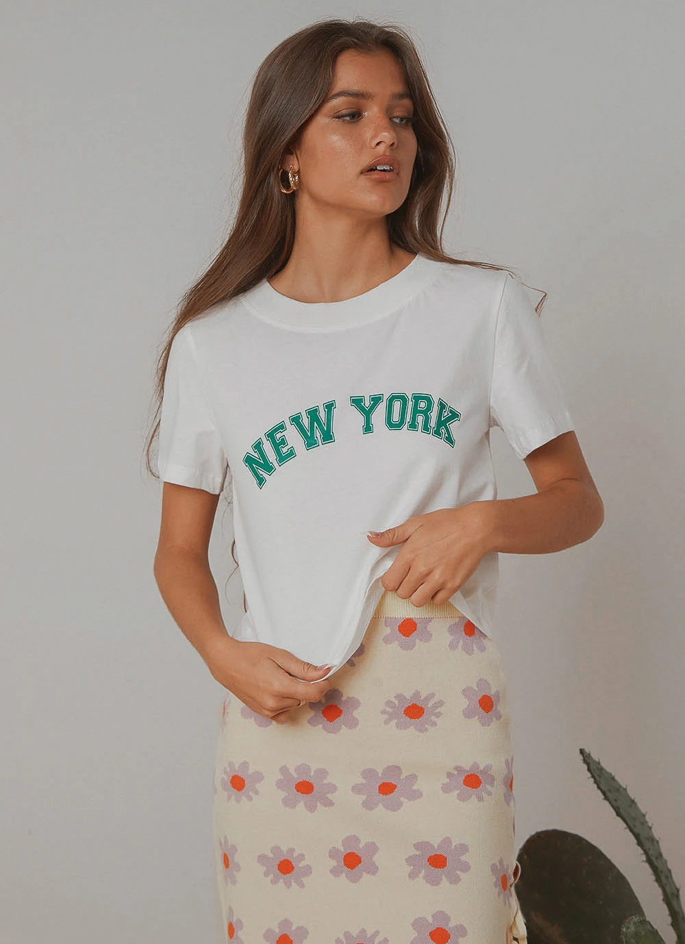 You can never go wrong with simple basics! This cute lil varsity inspired tee, is perfect for nailing that relaxed, off duty style. Pair with denim cut offs or varsity inspired lounge shorts.
