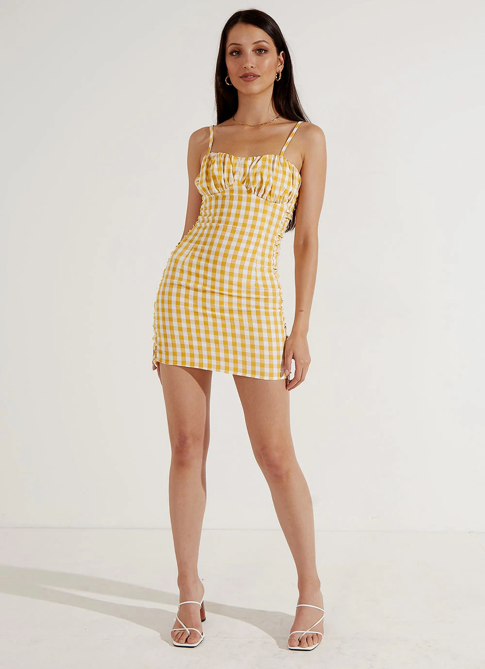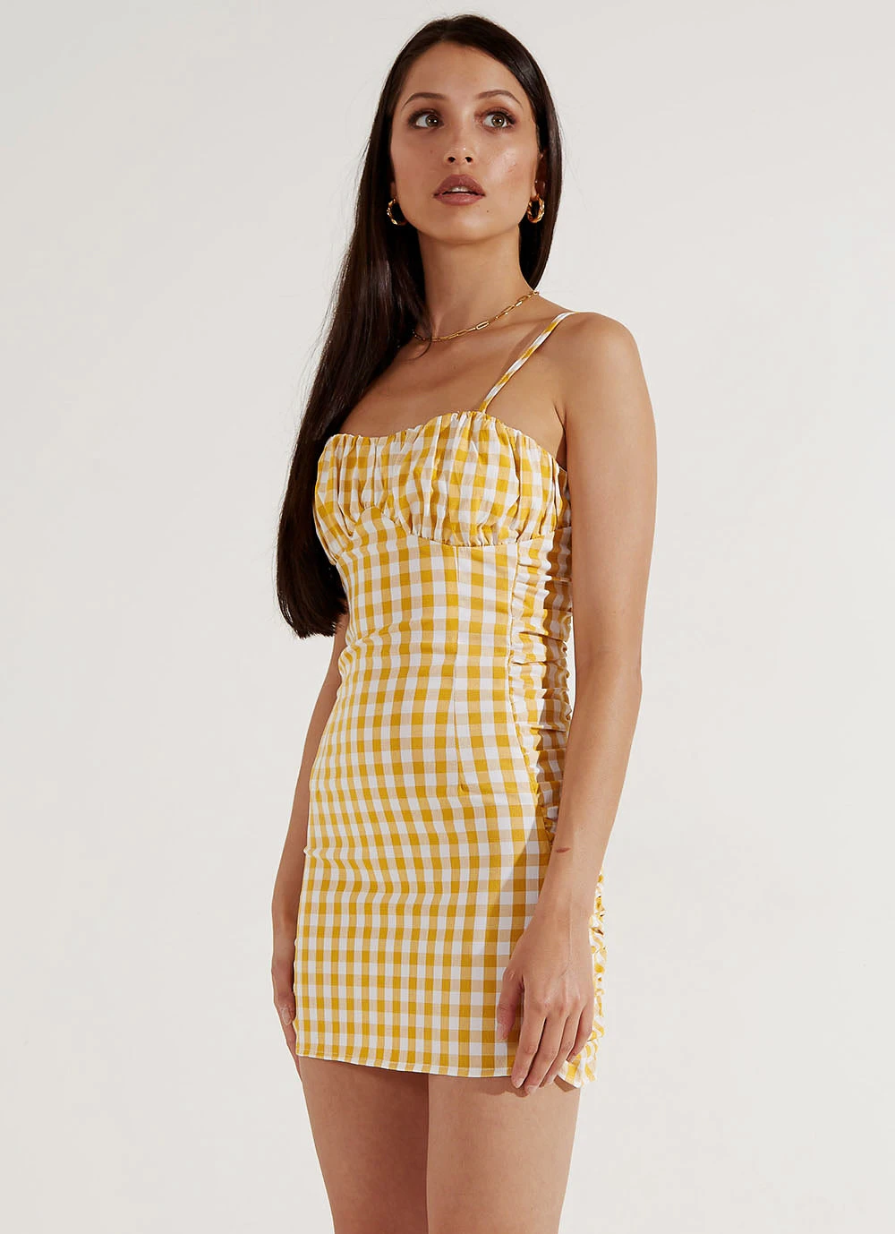 The answer to all your summer wardrobe prayers! Our Sunset Picnic mini dress is perfect for those easy, breezy summer days. We love this with white sneakers and a cute mini bag.