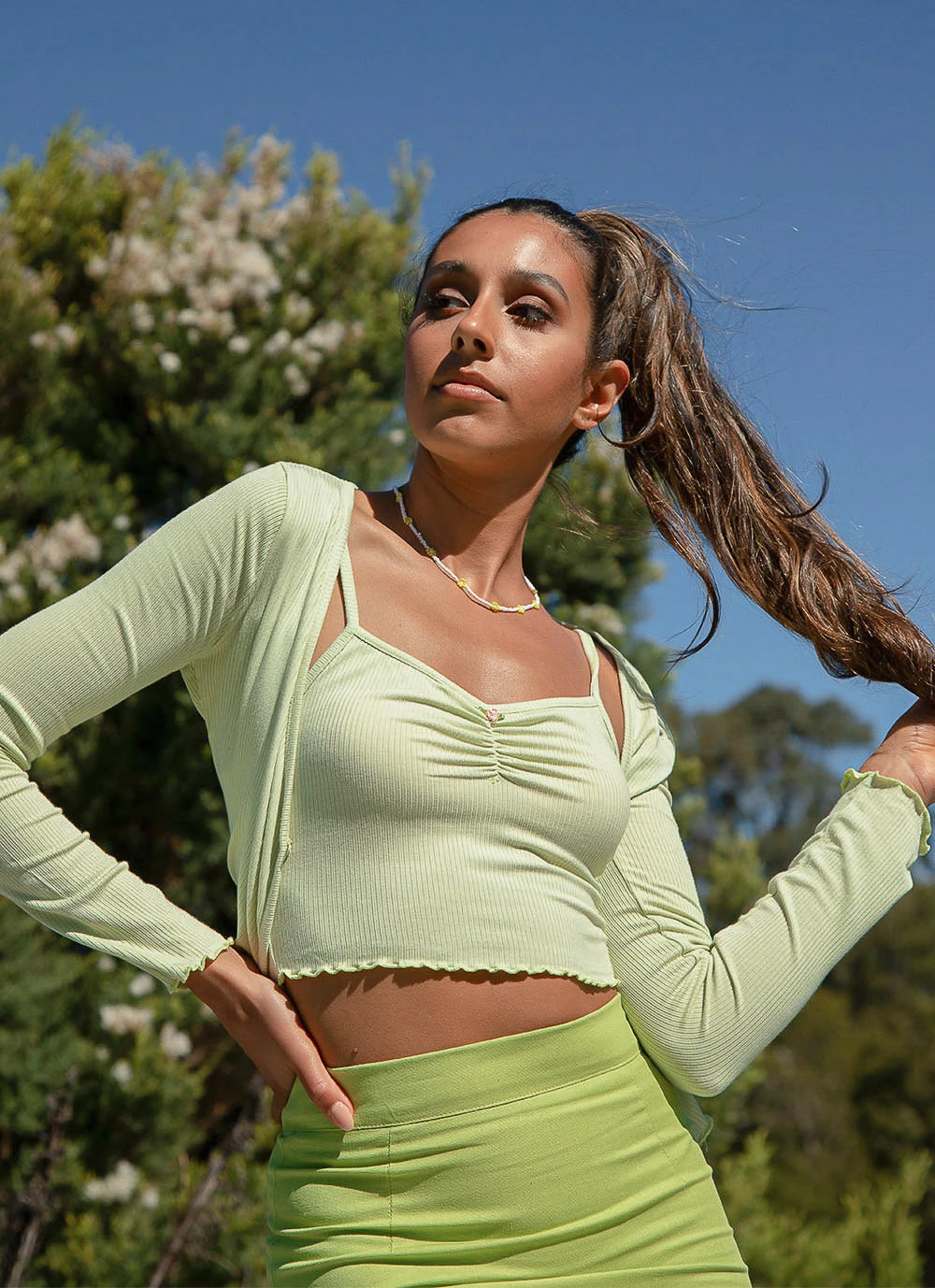 A wardobe essential you need now. This super cute set is perfect for nailing transeasonal style when you’re not exactly sure what the day will bring you. Cute paired with a little mini skirt or vintage jeans.