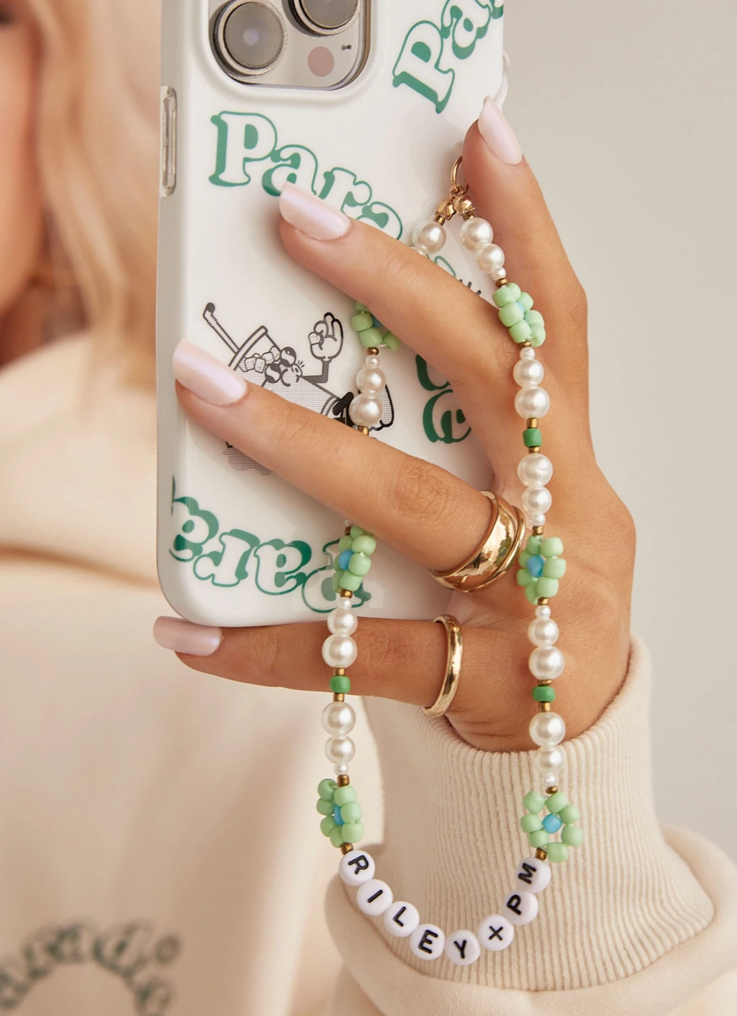 Everyday drip done right with the Maxo Relaxo Phone Case. A crisp white with contrasting paradise font motif in military green and cute ice coffee graphic.