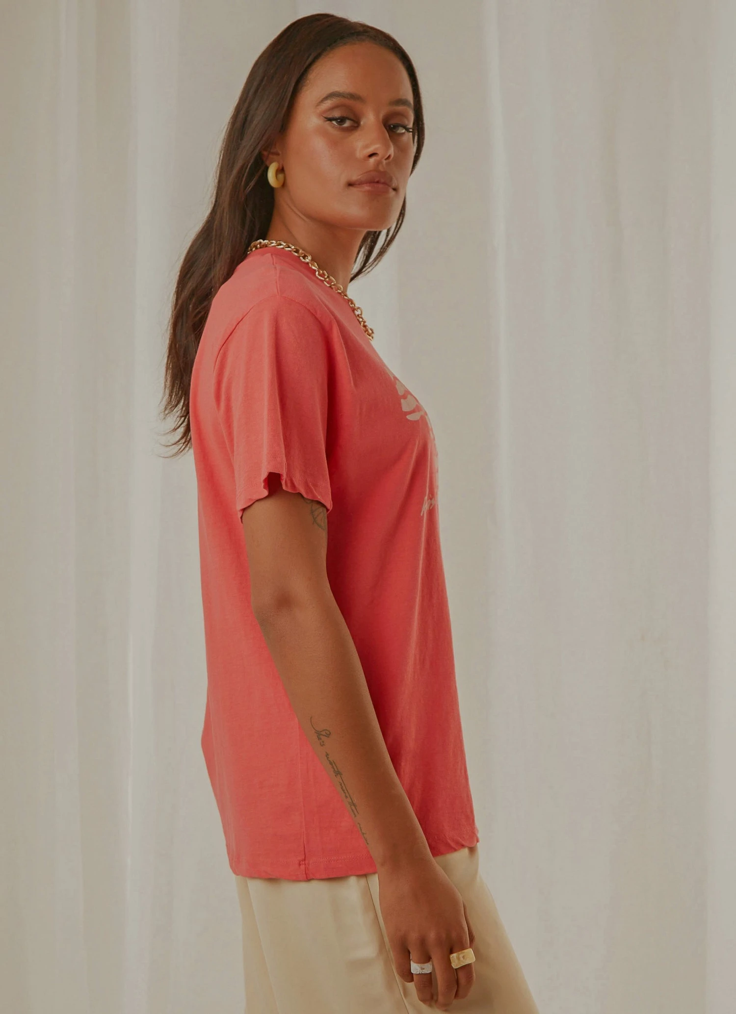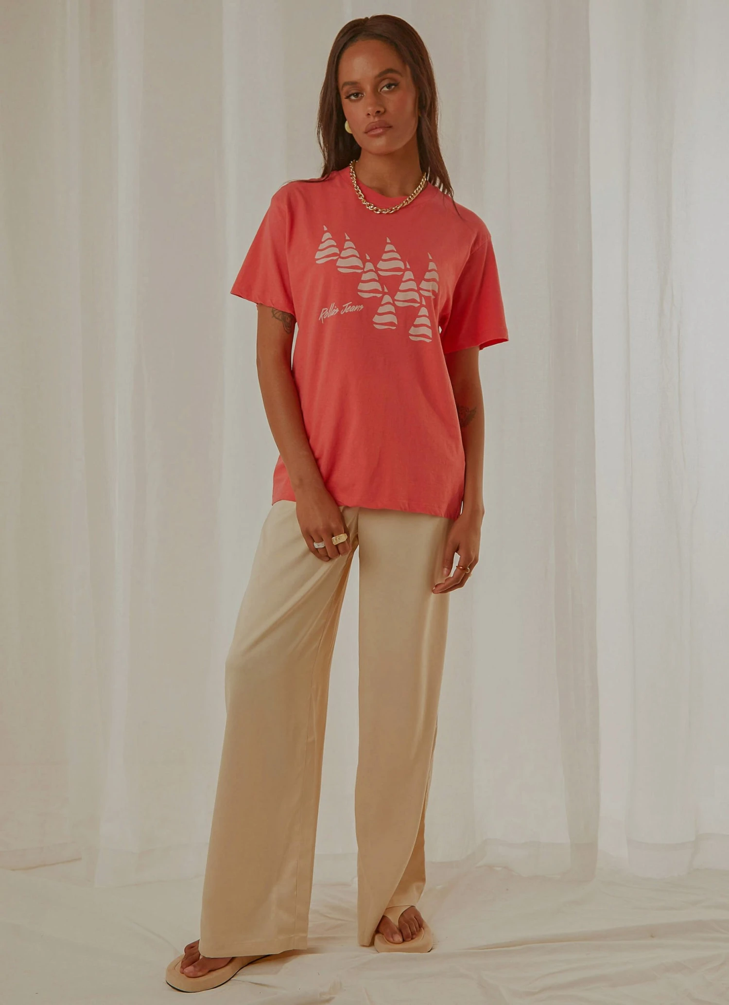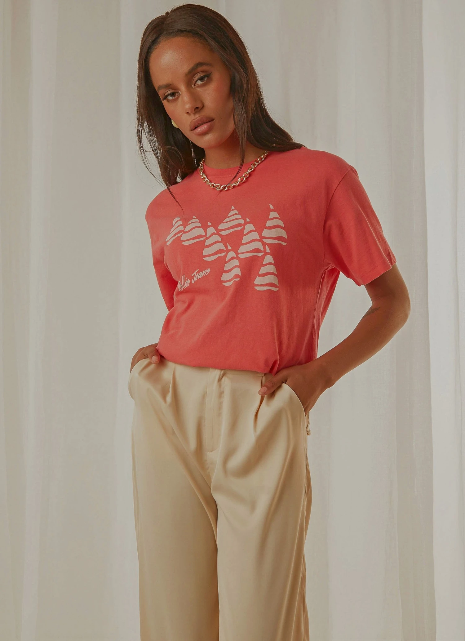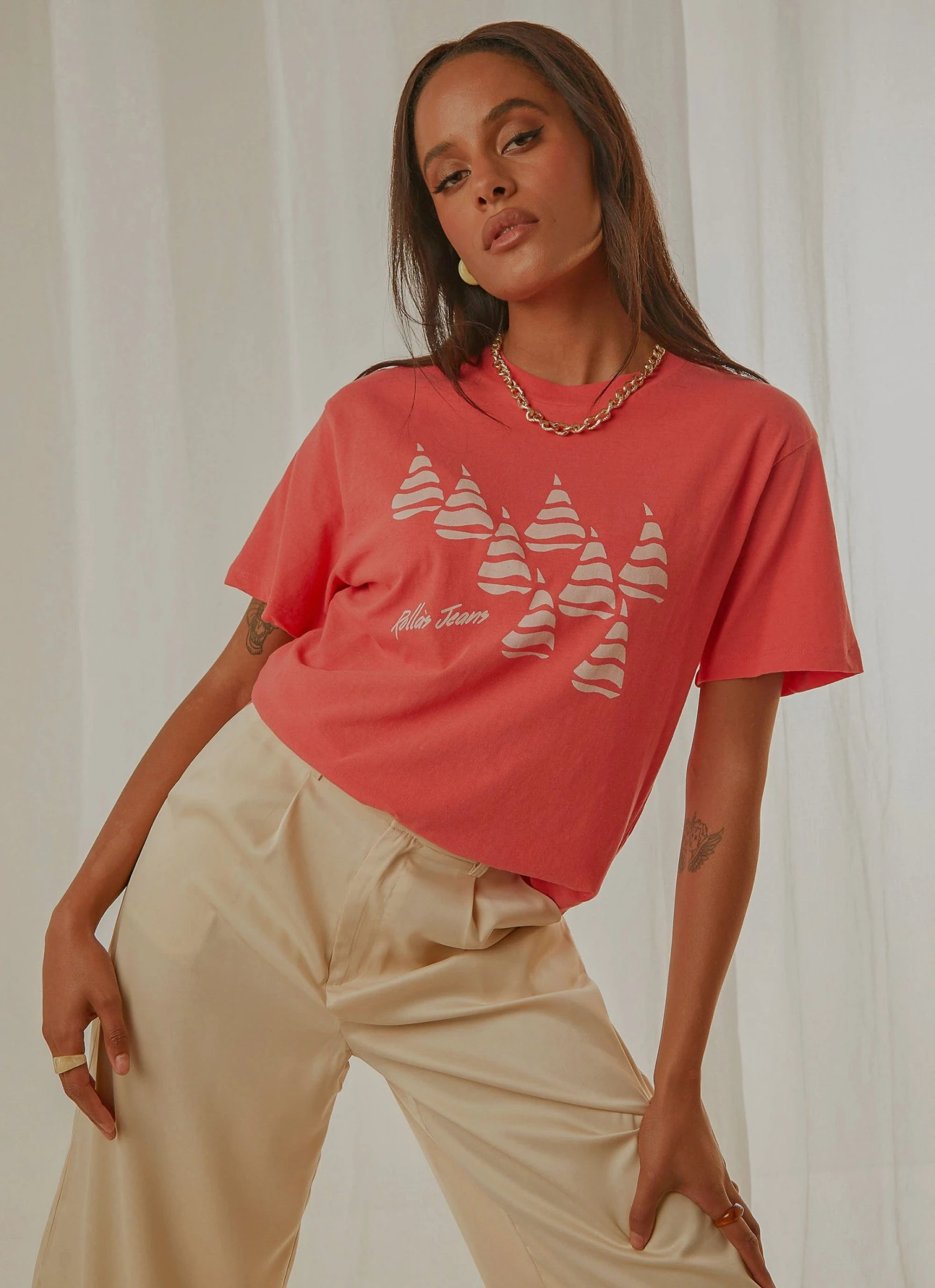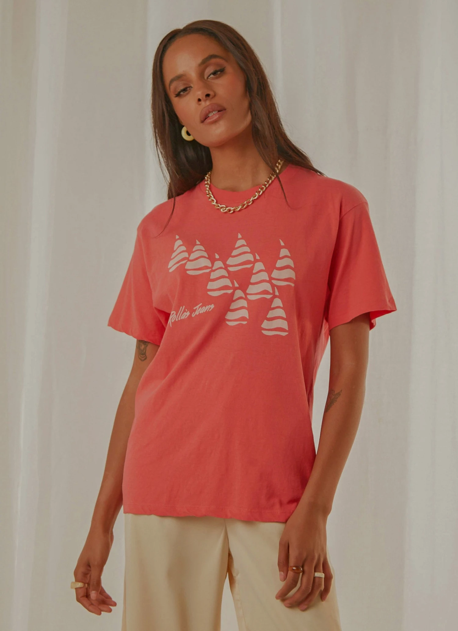 The Tomboy Tee has become a classic staple created for comfort and style, as it is fitted, but still has an oversized appeal. Featuring a Rolla’s original print, drop shoulders and a loose fitted silhouette, this white tee is a perfect match with high rise jeans.
