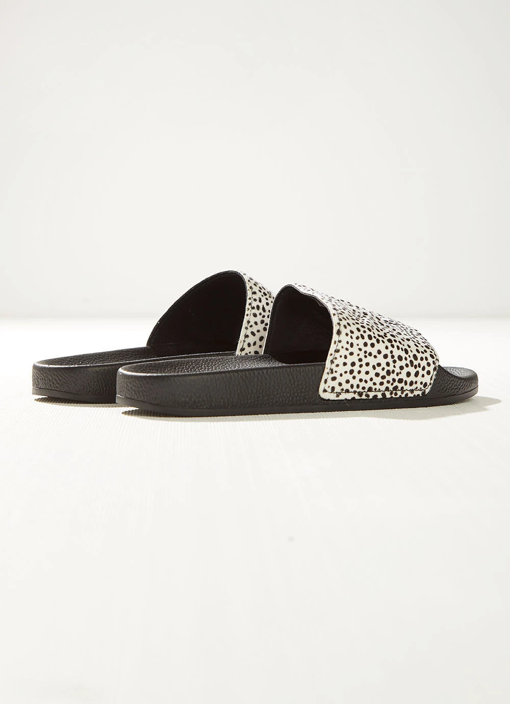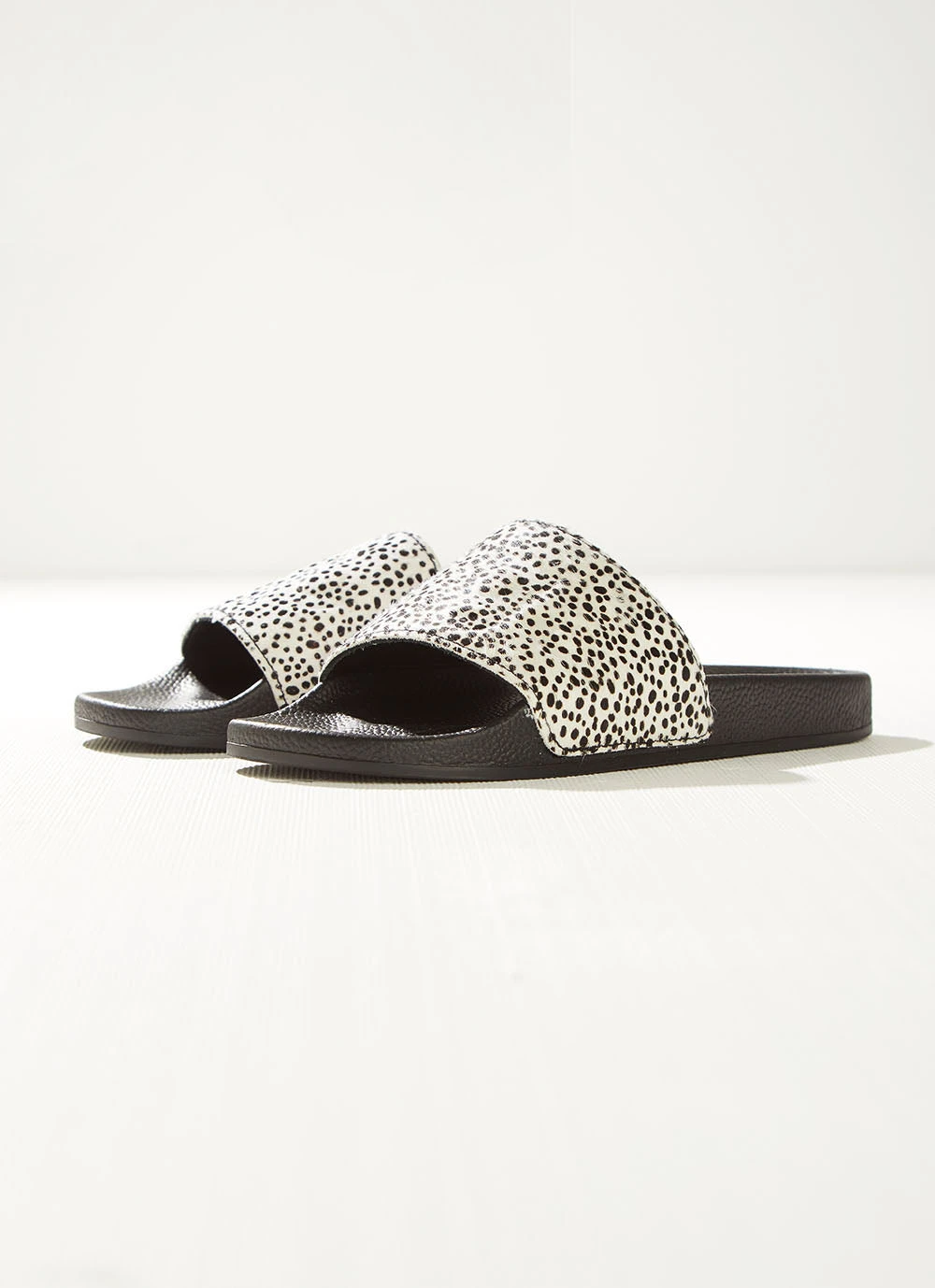 Dressed in leopard print pony hair, Superga’s Pool Slides feature a heritage tread outsole, synthetic strap and pebbled rubber topside crafted by injection moulds. A debossed logo across the straps offers a touch of understated branding; perfect for those ruling the urban jungle.