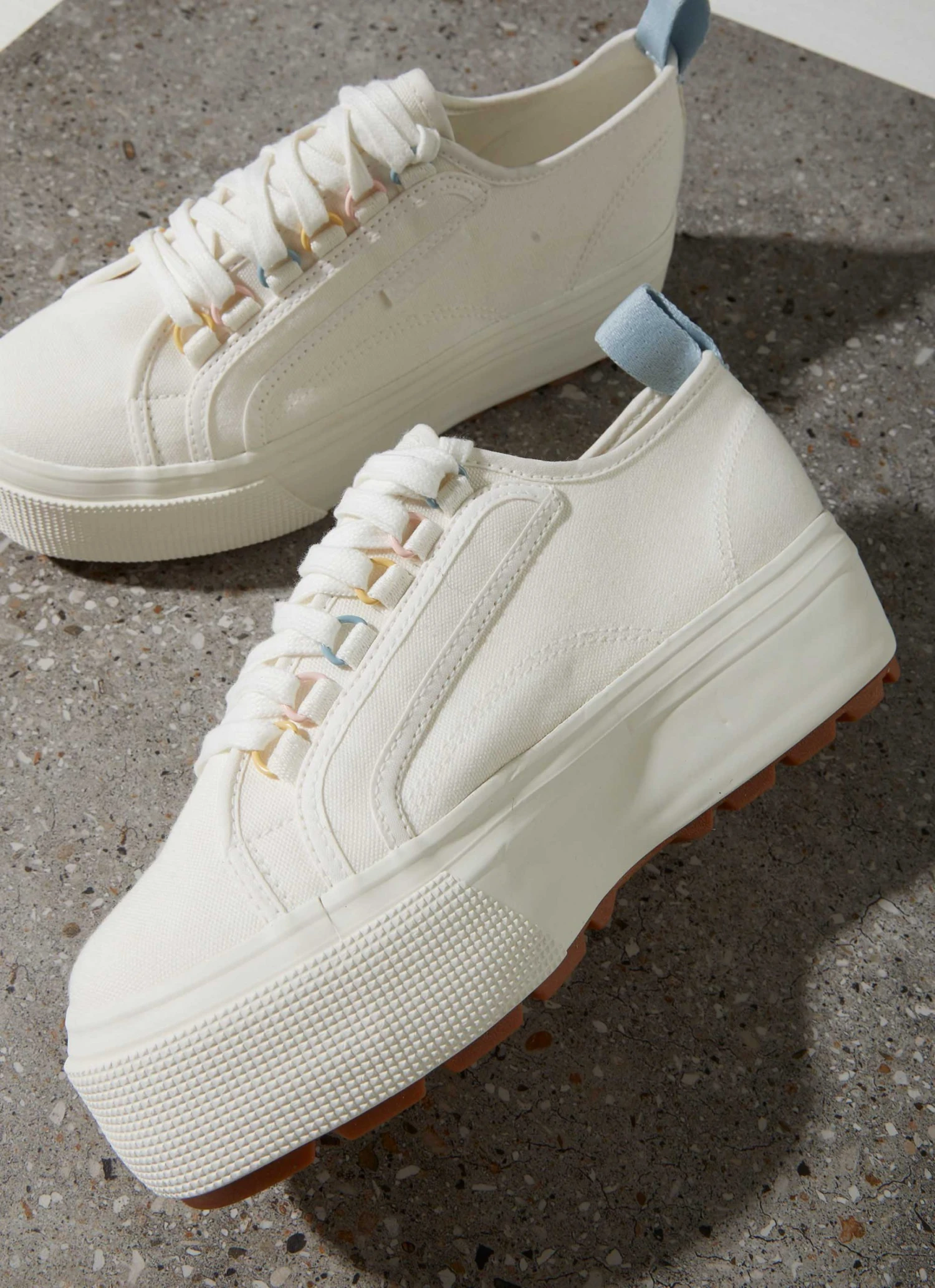 Superga for women with 4 cm wedge and upper in water resistant cotton with double eyestay. With colorfull D-rings and backtape. The Tank outsole, in moulded rubber, is a reboot of that has origins in the heritage of Superga
