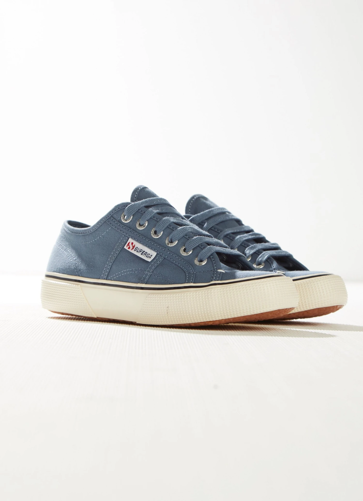 The 2021 intepretation of the most iconic household sneaker reinvents the classic in a masculine key: the perspective is flipped thanks to the unexpected combination of the classic breathable and resistant canvas upper with a higher sole, highlighted by the colored line that runs along the foxing.