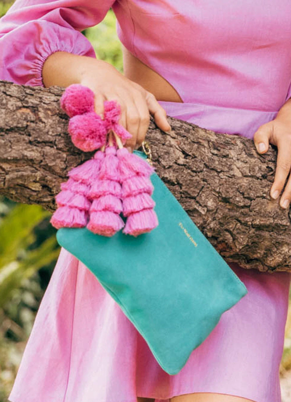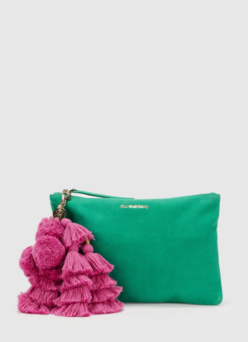 The Bedouin Clutch is made with the most supple raw-cut suede and features quality gold hardware, gold foil logo and The Wolf Gang’s detachable hand-made cotton detailed tribal tassel in a vibrant colorway. The Bedouin is complete with custom debossed metal coin detail.